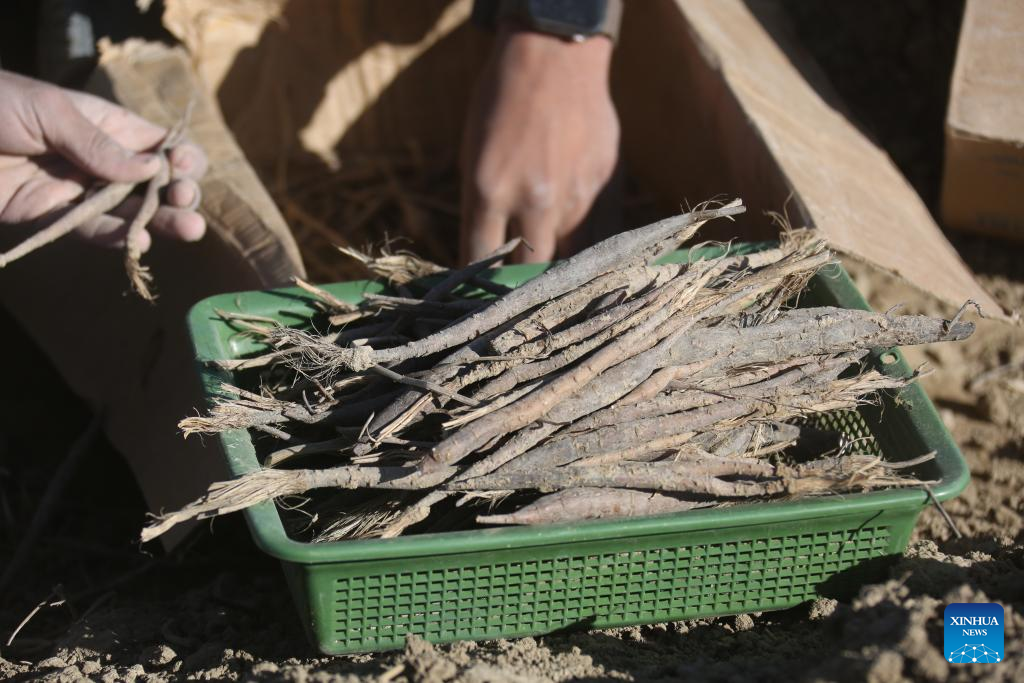 KABUL, Dec. 9 (Xinhua) -- Working on land along with over two dozen daily laborers in the Bagram district, 50 km north of Afghanistan's capital Kabul, Safiullah Rohani believes that the cultivation of asafetida, commonly known as "Hing," could serve as a viable and profitable replacement for opium poppy in the once poppy-growing country.
