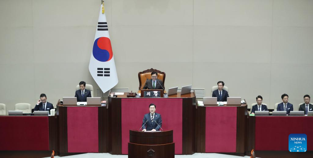 SEOUL, Dec. 14 (Xinhua) -- South Korea's parliament voted Saturday to impeach President Yoon Suk-yeol over his martial law declaration, after the first impeachment motion was dropped a week earlier as the ruling party lawmakers boycotted it.
