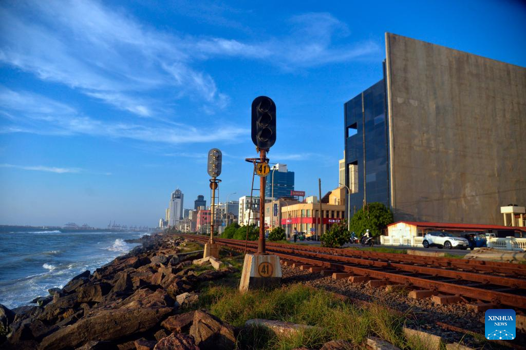 This photo taken on Dec. 23, 2024 shows the coastal railway line in Colombo, Sri Lanka.