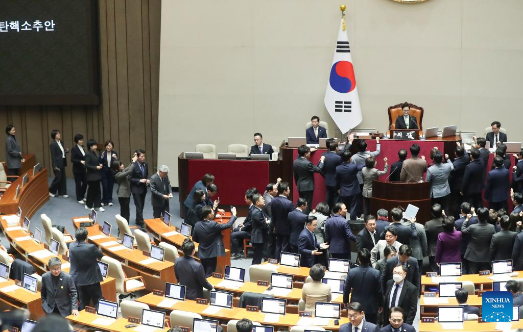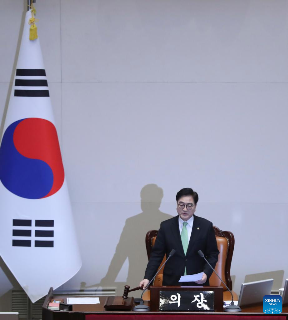 SEOUL, Dec. 27 (Xinhua) -- South Korea's opposition-controlled parliament voted Friday to impeach Prime Minister Han Duck-soo who had been serving as acting president following President Yoon Suk-yeol's impeachment.