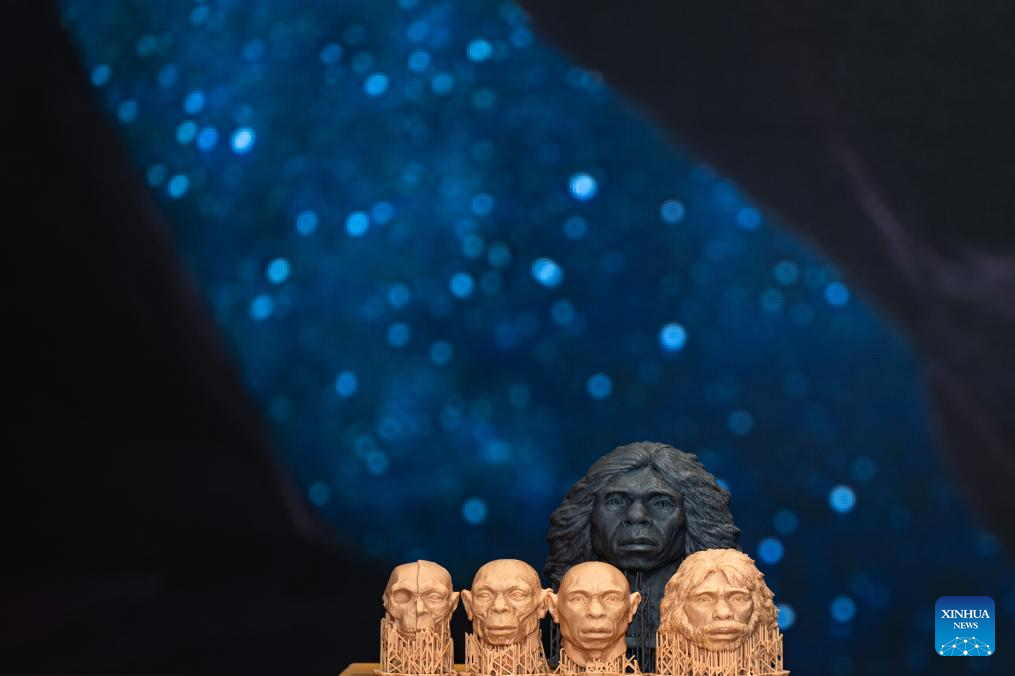 This photo taken on Dec. 26, 2024 shows the restored statues of a pair of fossil human skulls dating back to one million years ago at the Hubei Provincial Museum in Wuhan, central China's Hubei Province. The restored statues were unveiled by the Hubei Provincial Museum in central China on Thursday.