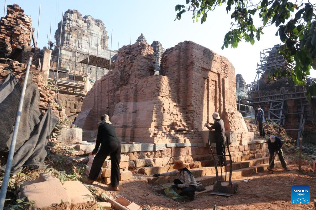 PHNOM PENH, Jan. 13 (Xinhua) -- Archaeologists of Cambodia's APSARA National Authority (ANA) have completed the restoration of Tower 15 at Phnom Bakheng temple in the Angkor Archaeological Park in northwest Siem Reap province, said an ANA's news release on Monday.