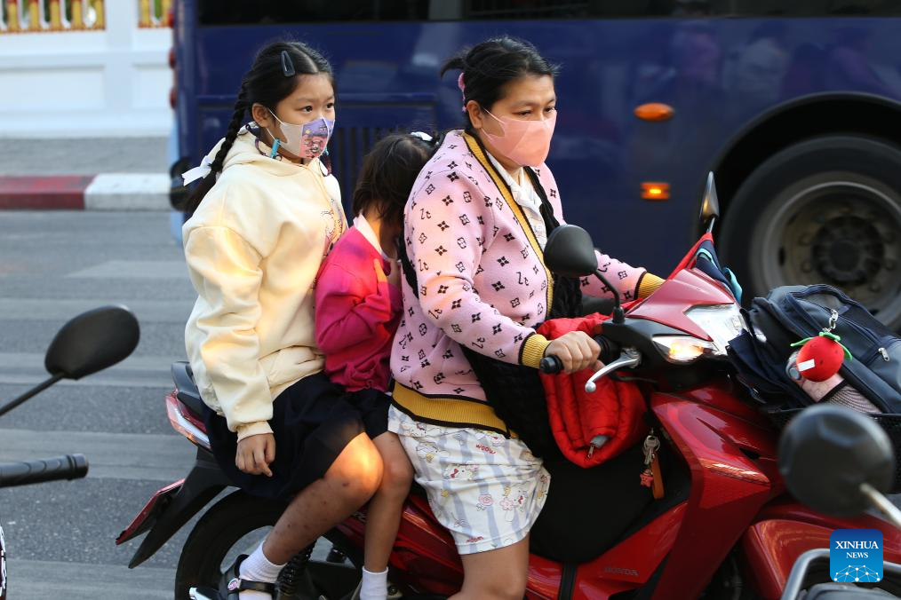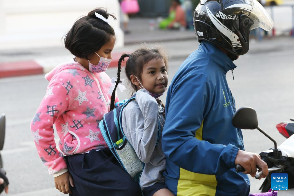 Students wearing long-sleeve jerseys are seen in Bangkok, Thailand, Jan. 13, 2025. The Meteorological Department announced that the lowest temperature in Bangkok reached 17 degrees Celsius on Monday. (Xinhua/Rachen Sageamsak)