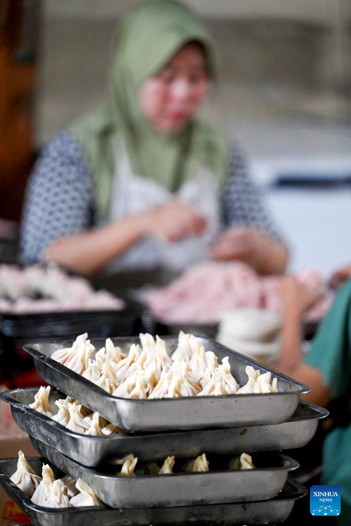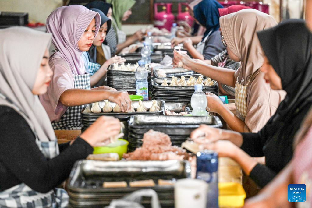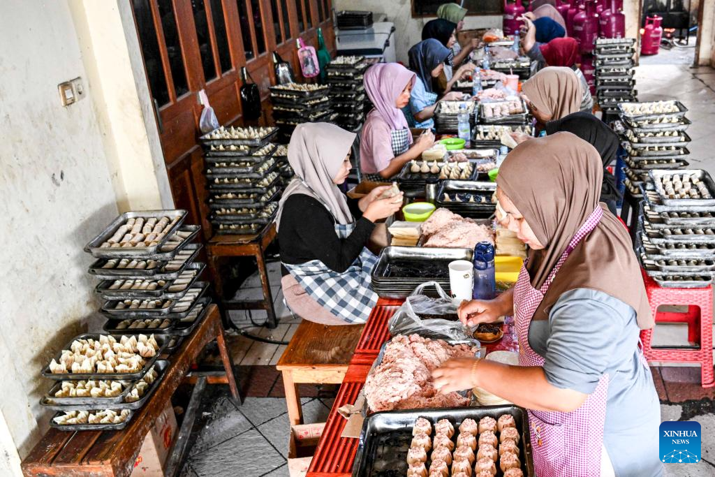 Workers make dim sum at a workshop in South Tangerang, Banten Province, Indonesia, Jan. 14, 2025. The demand for dim sum and snacks has seen an increase in many regions of Indonesia as the Chinese New Year is around the corner. Food processing companies and workshops are stepping up production to meet the market demand. (Xinhua/Agung Kuncahya B.)