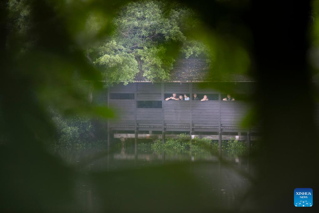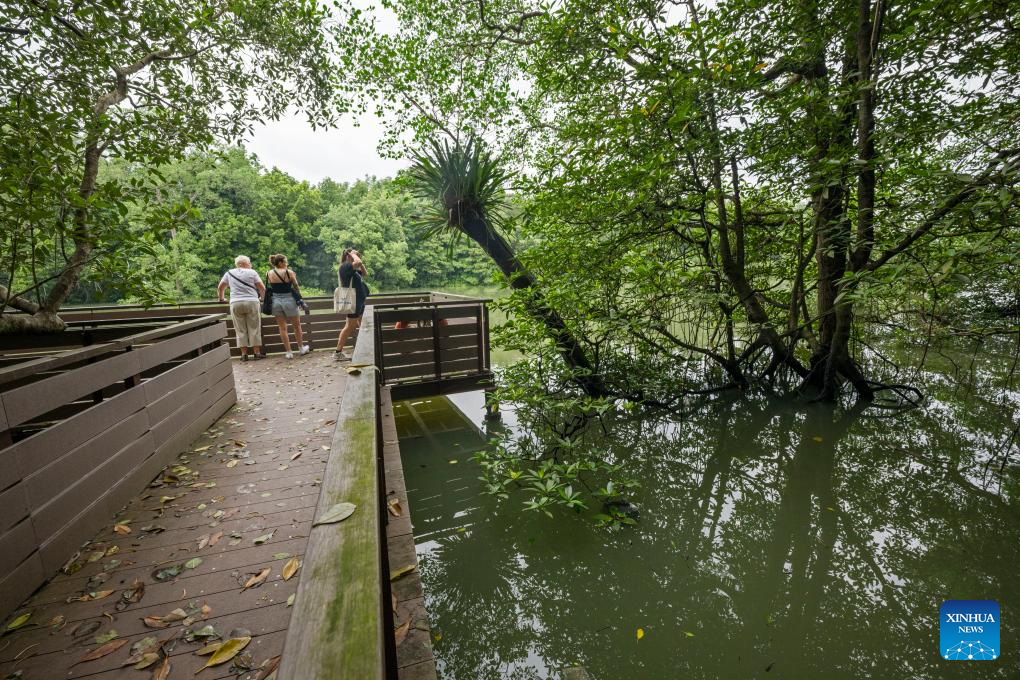 Tourists visit Singapore's Sungei Buloh Wetland Reserve on Jan. 15, 2025. Located in the northwest of Singapore, Sungei Buloh Wetland Reserve covers an area of more than 200 hectares of mangroves, ponds and forests. In 2003, the reserve was recognized as Singapore's first ASEAN Heritage Park. (Photo by Then Chih Wey/Xinhua)