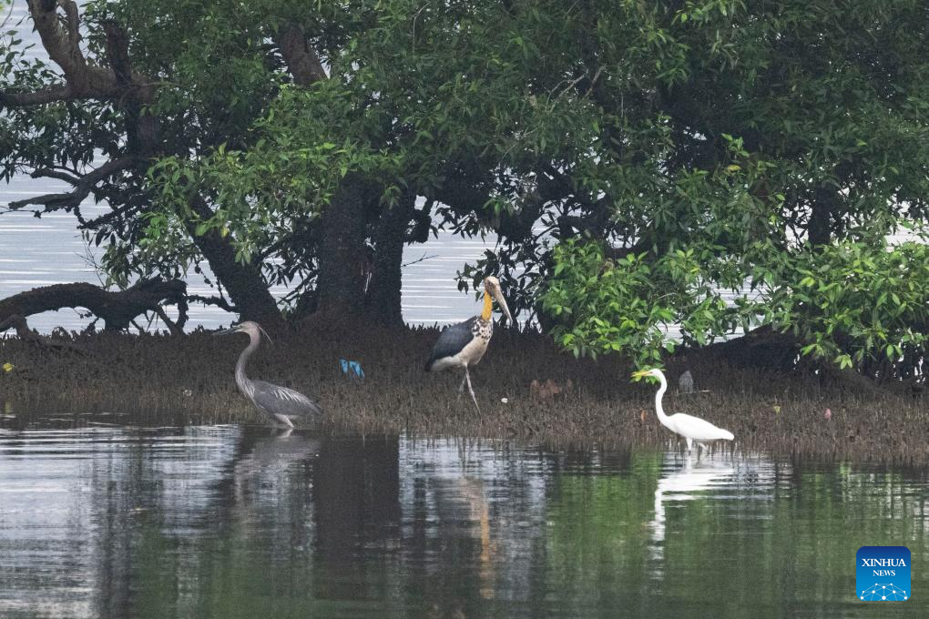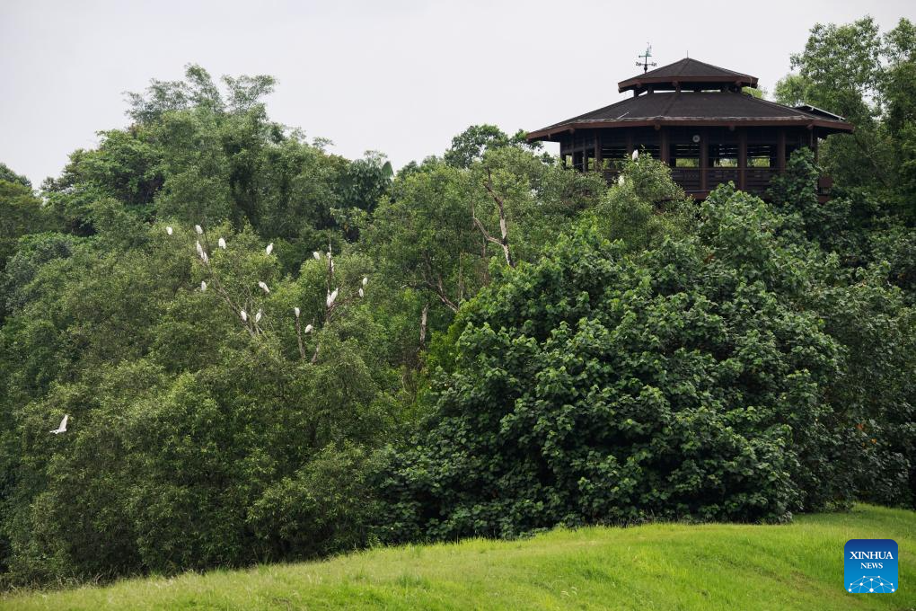 Birds are pictured in Singapore's Sungei Buloh Wetland Reserve on Jan. 15, 2025. Located in the northwest of Singapore, Sungei Buloh Wetland Reserve covers an area of more than 200 hectares of mangroves, ponds and forests. In 2003, the reserve was recognized as Singapore's first ASEAN Heritage Park. (Photo by Then Chih Wey/Xinhua)