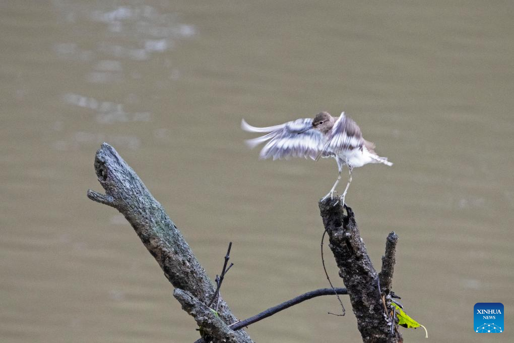 A migratory bird perches on a branch in Singapore's Sungei Buloh Wetland Reserve on Jan. 15, 2025. Located in the northwest of Singapore, Sungei Buloh Wetland Reserve covers an area of more than 200 hectares of mangroves, ponds and forests. In 2003, the reserve was recognized as Singapore's first ASEAN Heritage Park. (Photo by Then Chih Wey/Xinhua)