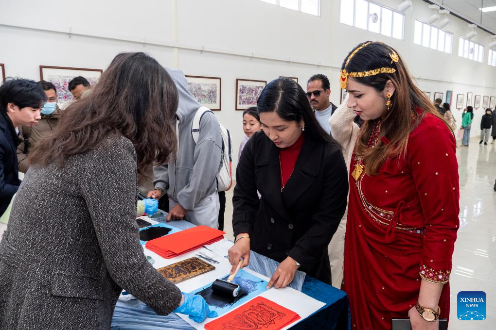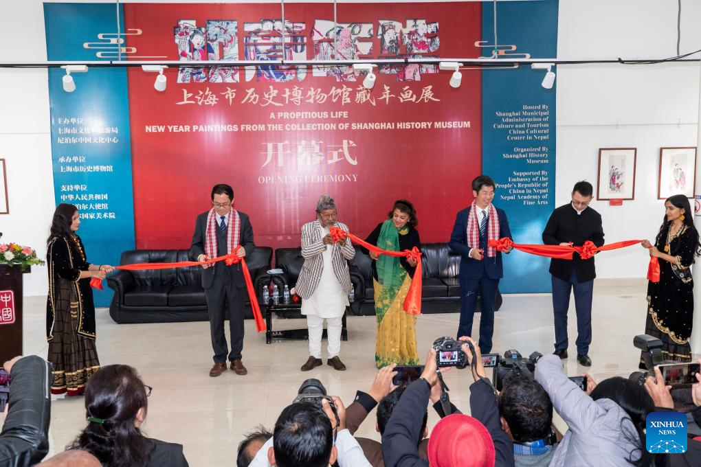 KATHMANDU, Jan. 24 (Xinhua) -- An exhibition of 60 woodblock Chinese New Year paintings was inaugurated here on Friday, offering a glimpse into the celebration of the Spring Festival in China.