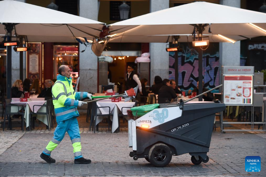 A sanitation worker is seen on a street in Madrid, Spain, Jan. 28, 2025. Spain concluded 2024 with record employment figures, according to the Economically Active Population Survey (EPA) published by the country's Statistical Office on Tuesday. The unemployment rate dropped to 10.6 percent, the lowest since the second quarter of 2008 when it was 10.36 percent. (Photo by Gustavo Valiente/Xinhua)