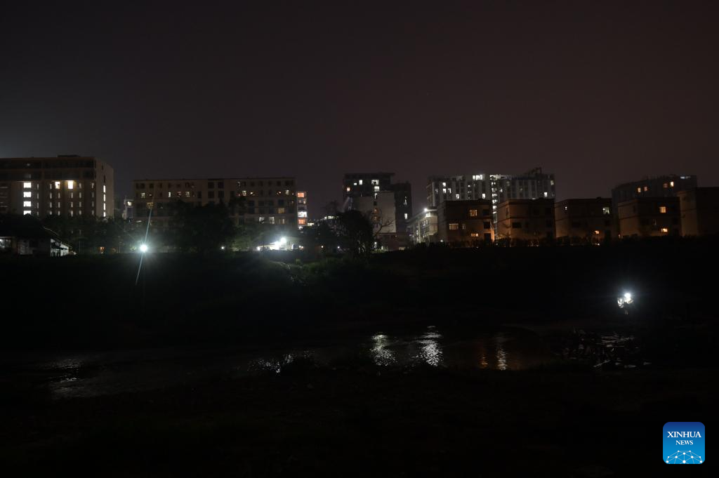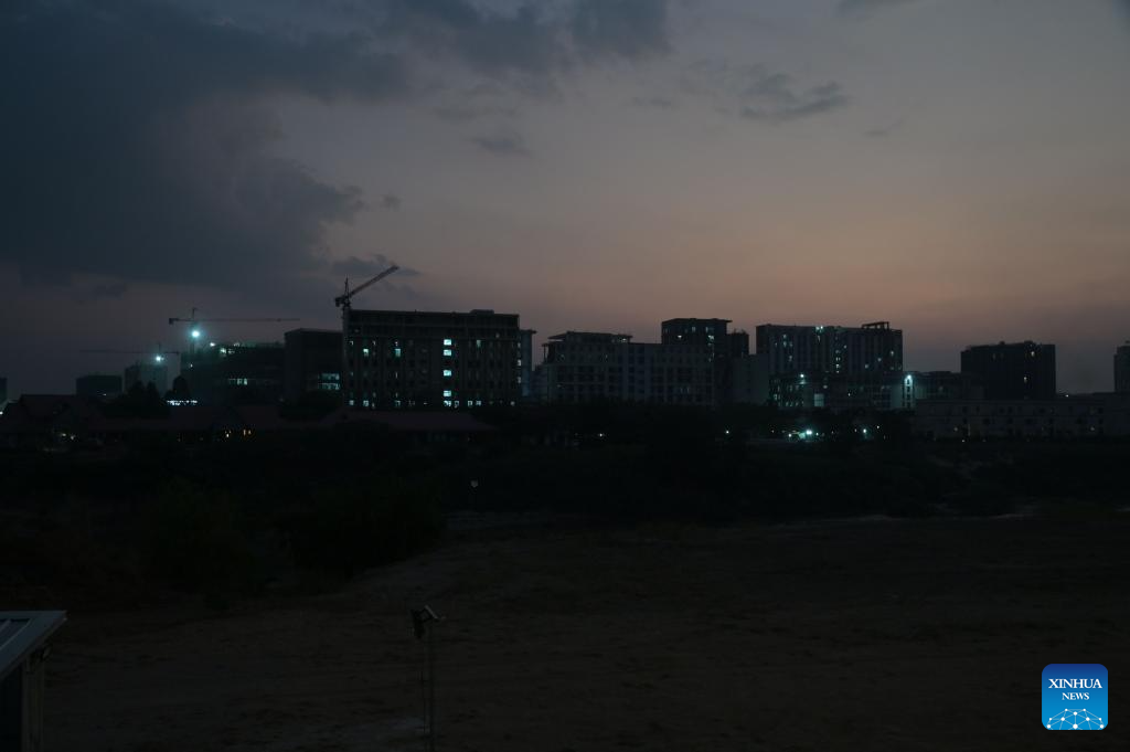 This photo taken on Feb. 4, 2025 shows an area along the Thai-Myanmar border seen from Mae Sot, Tak province, Thailand. Thailand suspended power supply to five areas along the border with Myanmar on Wednesday morning as part of its effort to combat illegal operations, Deputy Prime Minister Anutin Charnvirakul said. (Xinhua)