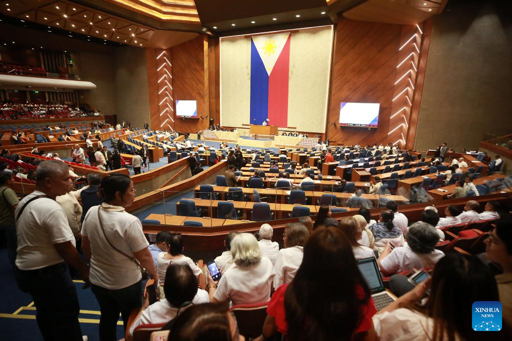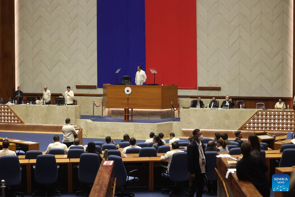 Lawmakers convene during the impeachment proceedings against Vice President Sara Duterte at the House of Representatives in Quezon City, the Philippines, on Feb. 5, 2025. Philippine Vice President Sara Duterte will face trial in the Senate after she was impeached by the House of Representatives on Wednesday. House Secretary General Reginald Velasco was ordered to transmit the impeachment complaint to the Senate after the House secured 215 signatures, more than the required one-third of the House membership to impeach Duterte, advancing the process to the Senate for trial. (Xinhua)