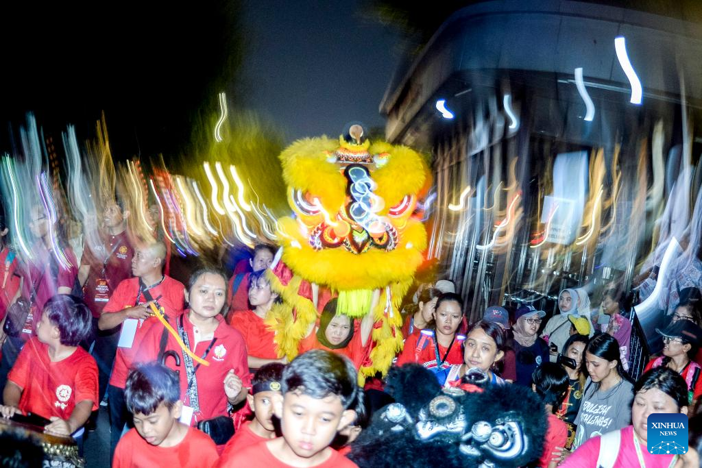 People perform lion dance during a Chinese New Year Carnival at Malioboro Street in Yogyakarta, Indonesia, on Feb. 6, 2025. (Photo by Agung Supriyanto/Xinhua)
