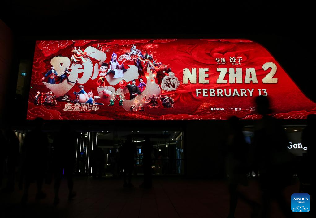 This photo taken on Feb. 11, 2025 shows a projection screen for the Chinese fantasy feature "Ne Zha 2" at IMAX Sydney in Sydney, Australia. (Xinhua/Ma Ping)