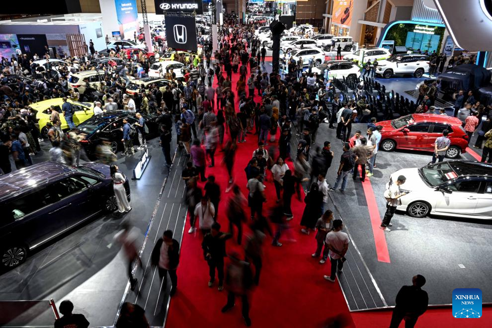 People visit the 2025 Indonesia International Motor Show (IIMS) in Jakarta, Indonesia, Feb. 13, 2025. The 2025 IIMS opened in Jakarta on Thursday, with many Chinese auto brands on display. (Xinhua/Agung Kuncahya B.)