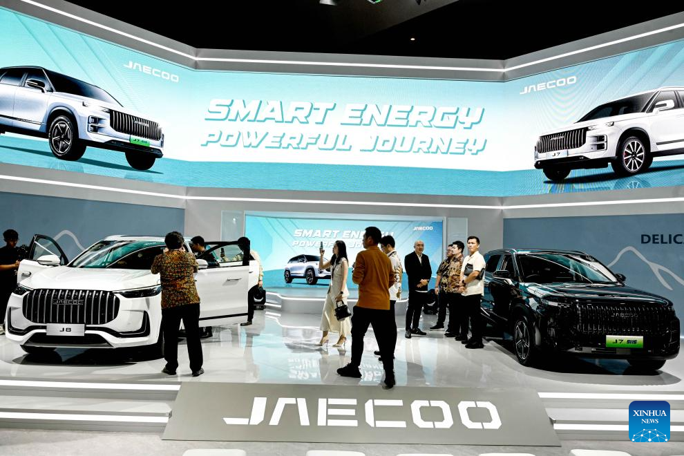 This photo taken on Feb. 13, 2025 shows the booth of Jaecoo, a brand of Chinese automaker Chery, during the 2025 Indonesia International Motor Show (IIMS) in Jakarta, Indonesia. The 2025 IIMS opened in Jakarta on Thursday, with many Chinese auto brands on display. (Xinhua/Agung Kuncahya B.)