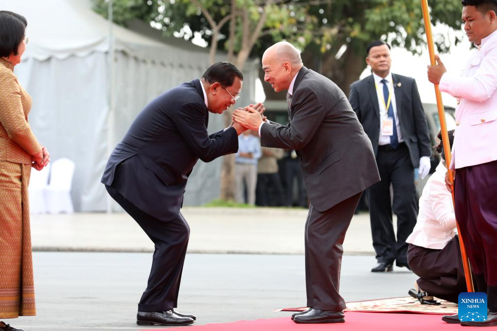PHNOM PENH, Feb. 17 (Xinhua) -- Cambodian King Norodom Sihamoni on Monday praised Prime Minister Hun Manet for his sound policies to ensure the kingdom's economic growth and social stability.