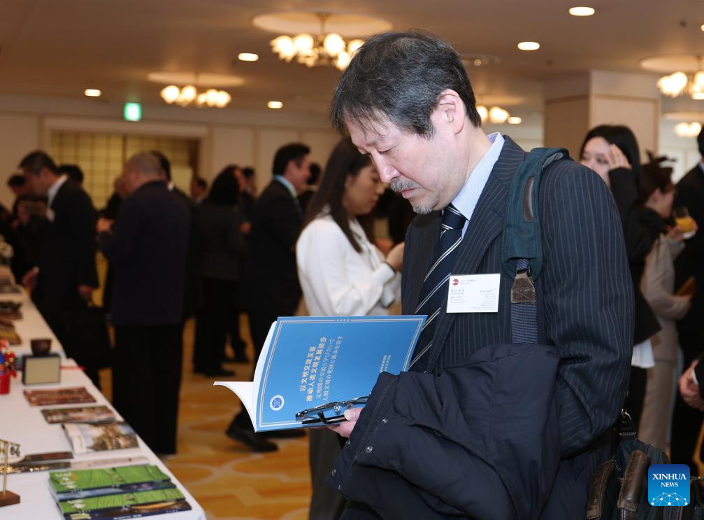A delegate reads a report titled "Promoting the Development and Progress of Human Civilization through Exchange and Mutual Learning" at the ongoing dialogue on boosting cultural exchange between media organizations and think tanks of China and Japan in Tokyo, Japan, Feb. 18, 2025. The National High-Level Think Tank of the Xinhua News Agency on Tuesday issued a report in Tokyo, capital of Japan, titled "Promoting the Development and Progress of Human Civilization through Exchange and Mutual Learning."