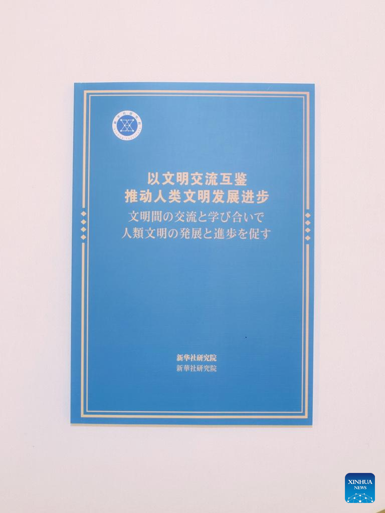This photo taken on Feb. 18, 2025 shows a copy of a report titled "Promoting the Development and Progress of Human Civilization through Exchange and Mutual Learning" in Tokyo, Japan. The National High-Level Think Tank of the Xinhua News Agency on Tuesday issued a report in Tokyo, capital of Japan, titled "Promoting the Development and Progress of Human Civilization through Exchange and Mutual Learning."