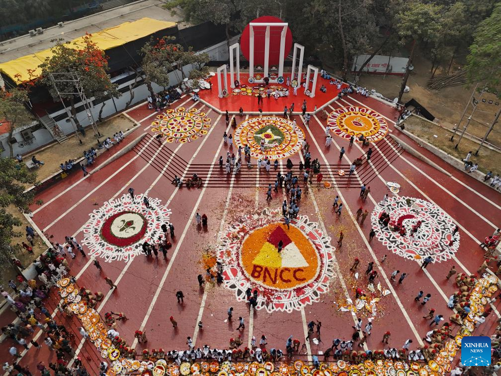 Children take part in a memorial observing International Mother Language Day in Dhaka, Bangladesh, Feb. 21, 2025. Hundreds of thousands of people in Bangladeshi capital Dhaka Friday paid tributes to the country's language movement activists who sacrificed their lives on the day in 1952. (Photo by Habibur Rahman/Xinhua)