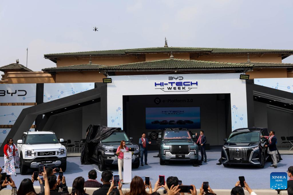 KATHMANDU, Feb. 26 (Xinhua) -- Chinese automaker BYD on Wednesday initiated a hi-tech week in the Nepali captial, showcasing the latest innovations in electric mobility and its whole brand matrix of electric vehicles (EVs).