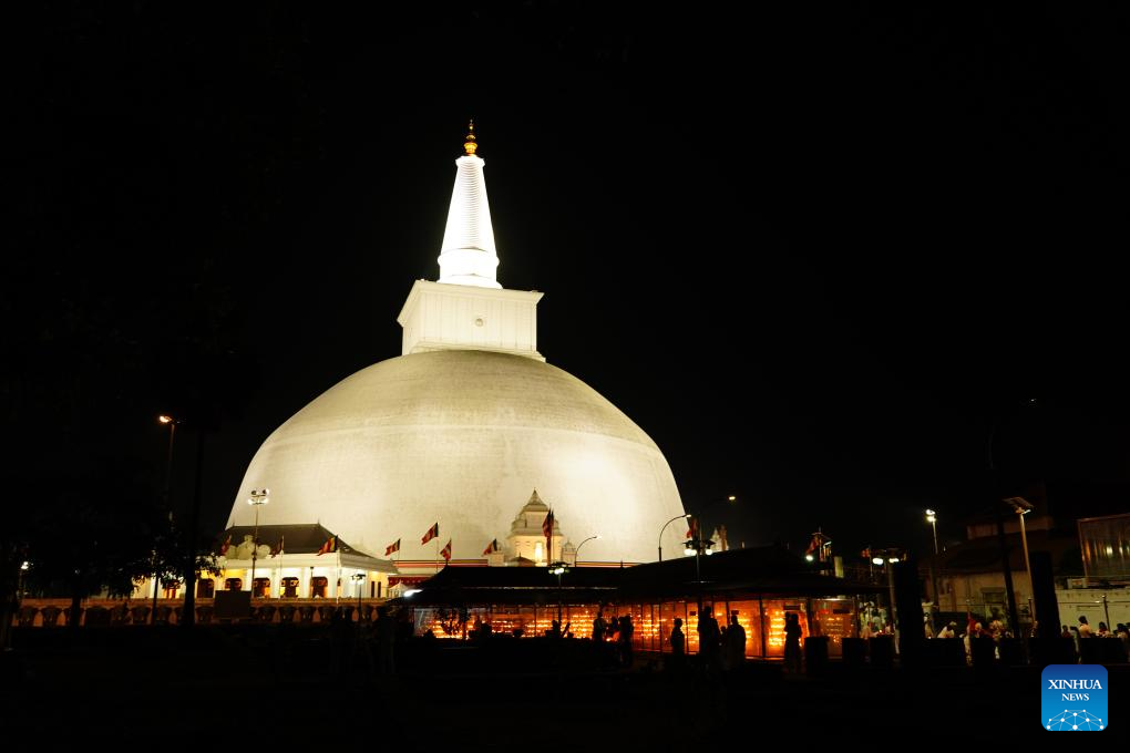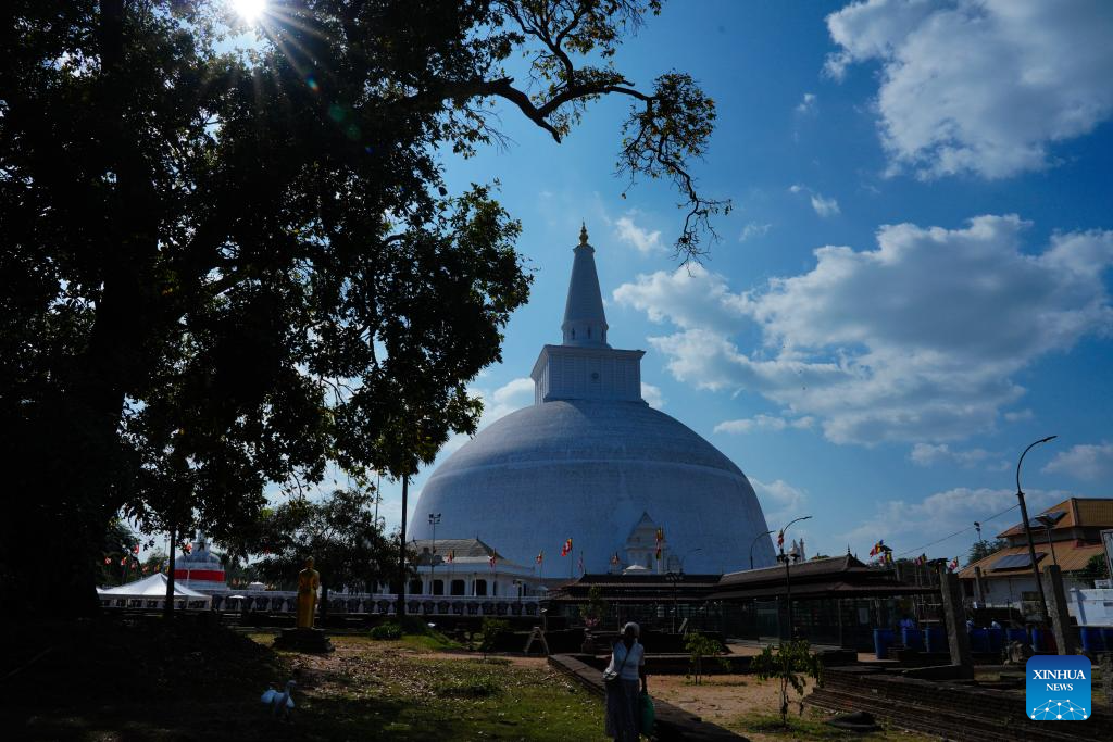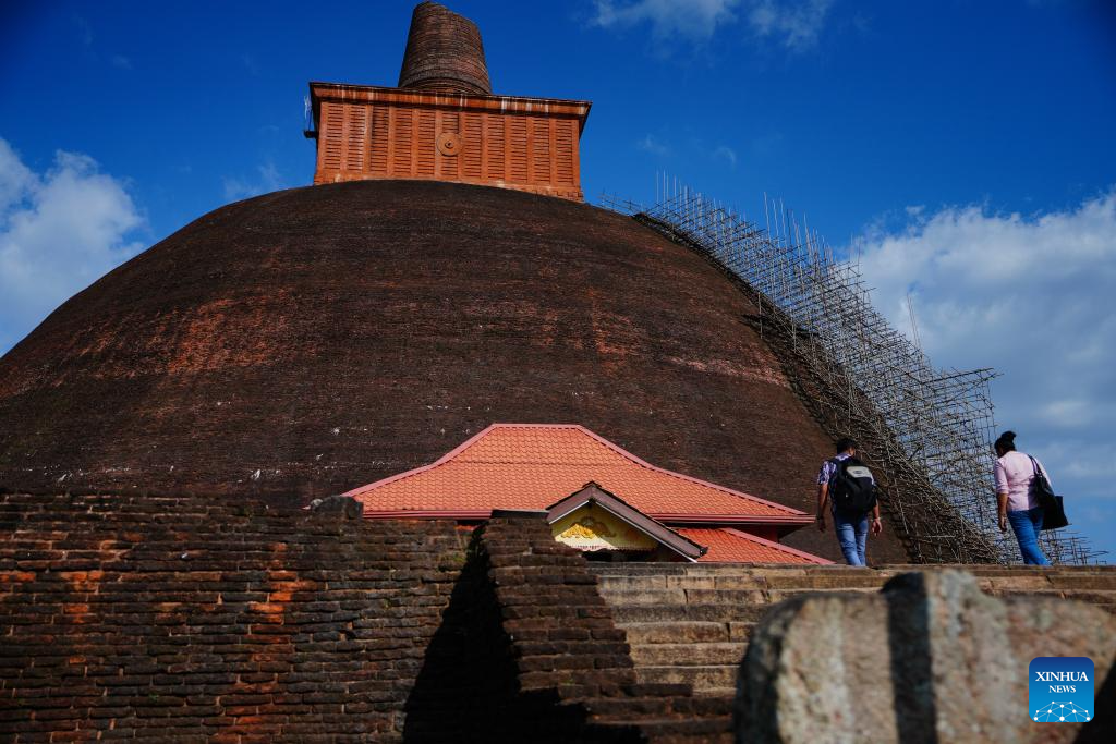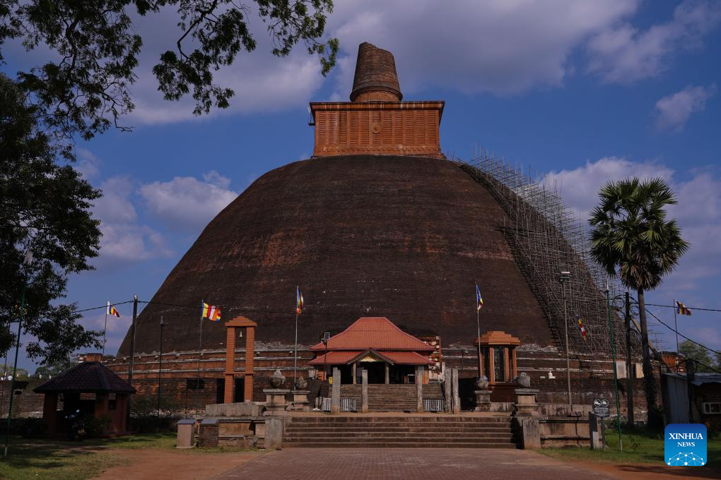 This photo shows the Ruwanwelisaya stupa in Anuradhapura, Sri Lanka, Feb. 21, 2025. (Xinhua/Wu Yue)