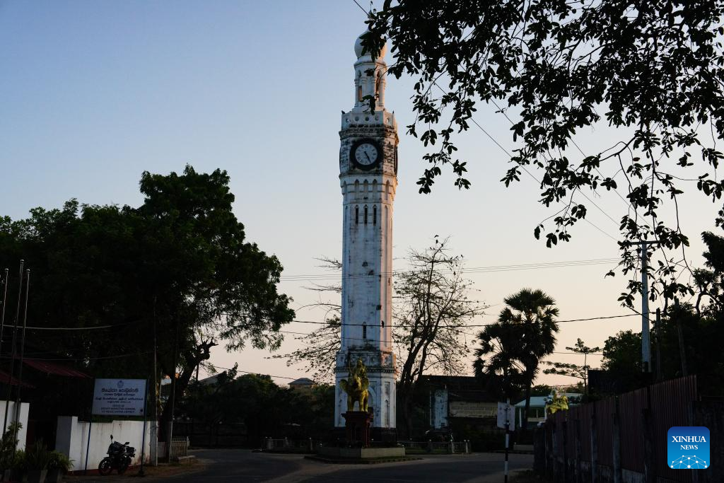 This photo taken on Feb. 22, 2025 shows the Jaffna Clock Tower in Jaffna, Sri Lanka. Located in northern Sri Lanka, Jaffna is a coastal city heavily ravaged during a long-term civil war. Today people here have embraced a new life. (Xinhua/Wu Yue)