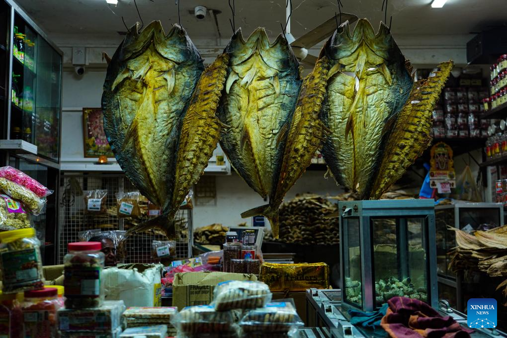 This photo taken on Feb. 22, 2025 shows seafood displayed at a shop in Jaffna, Sri Lanka. Located in northern Sri Lanka, Jaffna is a coastal city heavily ravaged during a long-term civil war. Today people here have embraced a new life. (Xinhua/Chen Dongshu)