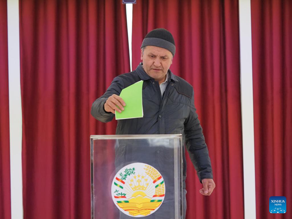 Tajikistan's President Emomali Rahmon, leader of the ruling People's Democratic Party, cast his ballot on Sunday morning at polling station No. 15 in the capital city of Dushanbe.