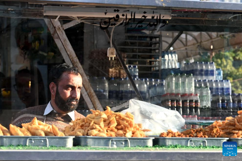 A snacks vendor waits for customers in Islamabad, Pakistan, March 4, 2025. (Photo by Daniyal Khan Jadoon/Xinhua)