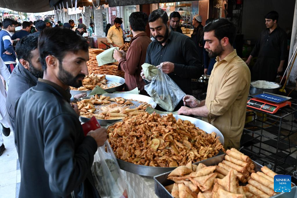 People buy snacks for Iftar, the fast-breaking meal, in Islamabad, Pakistan, March 4, 2025. (Photo by Daniyal Khan Jadoon/Xinhua)