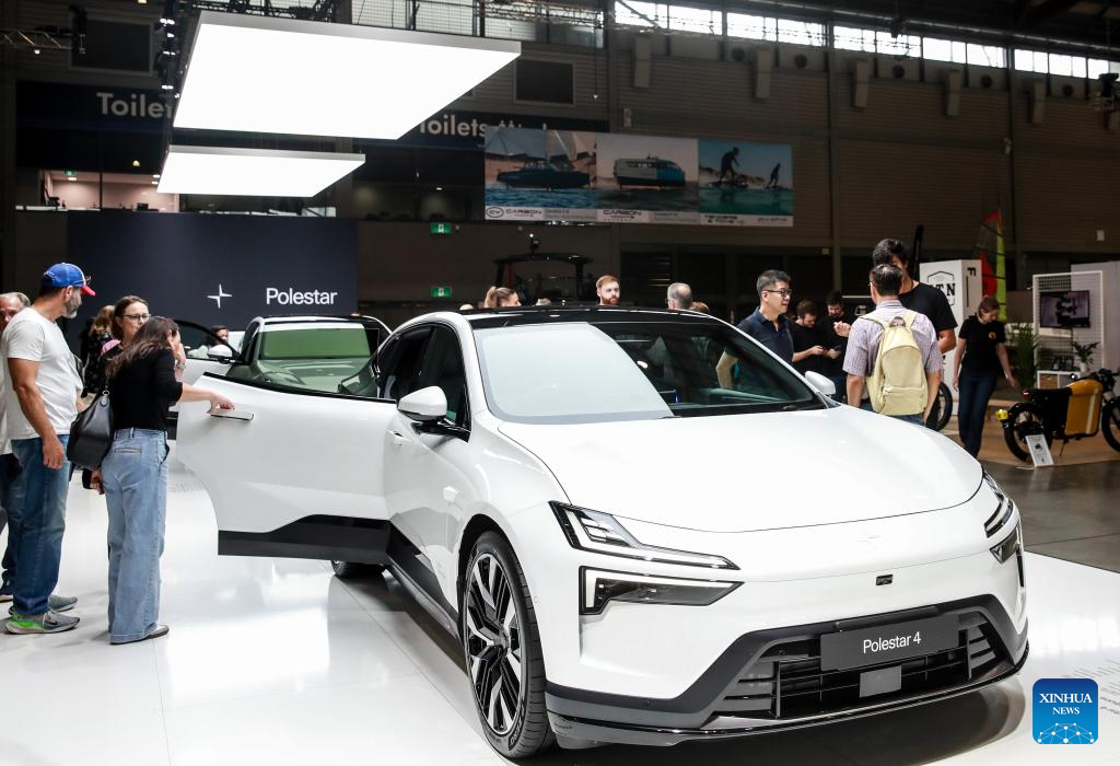 People view an electric vehicle by Polestar during the Everything Electric Australia, a home energy and electric vehicle show, in Sydney, Australia, March 7, 2025. The event will last three days till March 9. (Xinhua/Ma Ping)