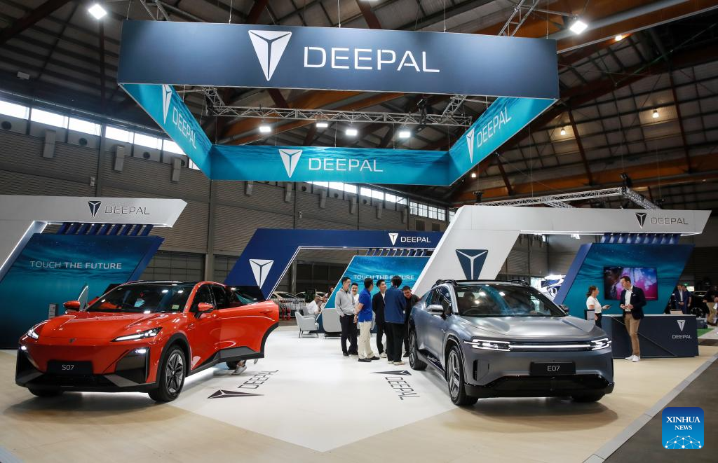 This photo shows the exhibition stand for Deepal during the Everything Electric Australia, a home energy and electric vehicle show, in Sydney, Australia, March 7, 2025. The event will last three days till March 9. (Xinhua/Ma Ping)
