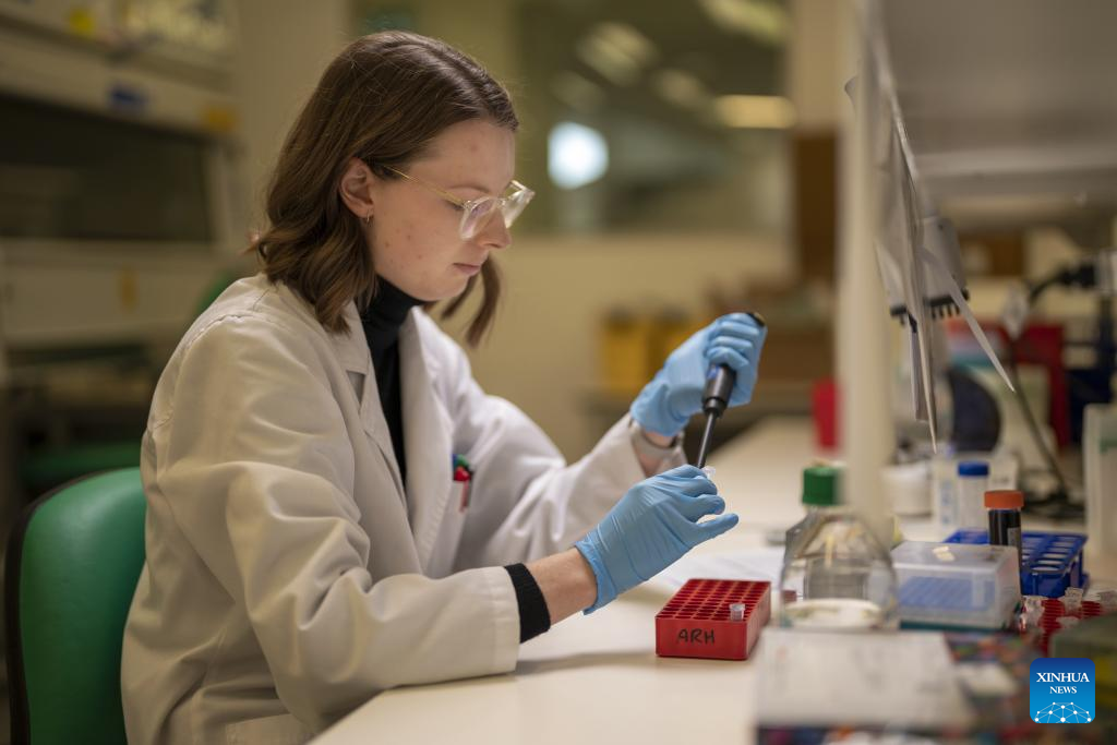 This file photo shows Samantha McGaughey working at a laboratory at the Australian National University (ANU) in Canberra, Australia, on July 22, 2021. (Jamie Kidston/ANU/Handout via Xinhua)