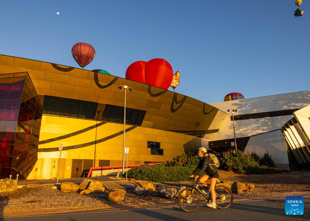 Hot air balloons fly over the National Museum of Australia during the annual Canberra Balloon Spectacular in Canberra, Australia, March 18, 2025. (Photo by Chu Chen/Xinhua)