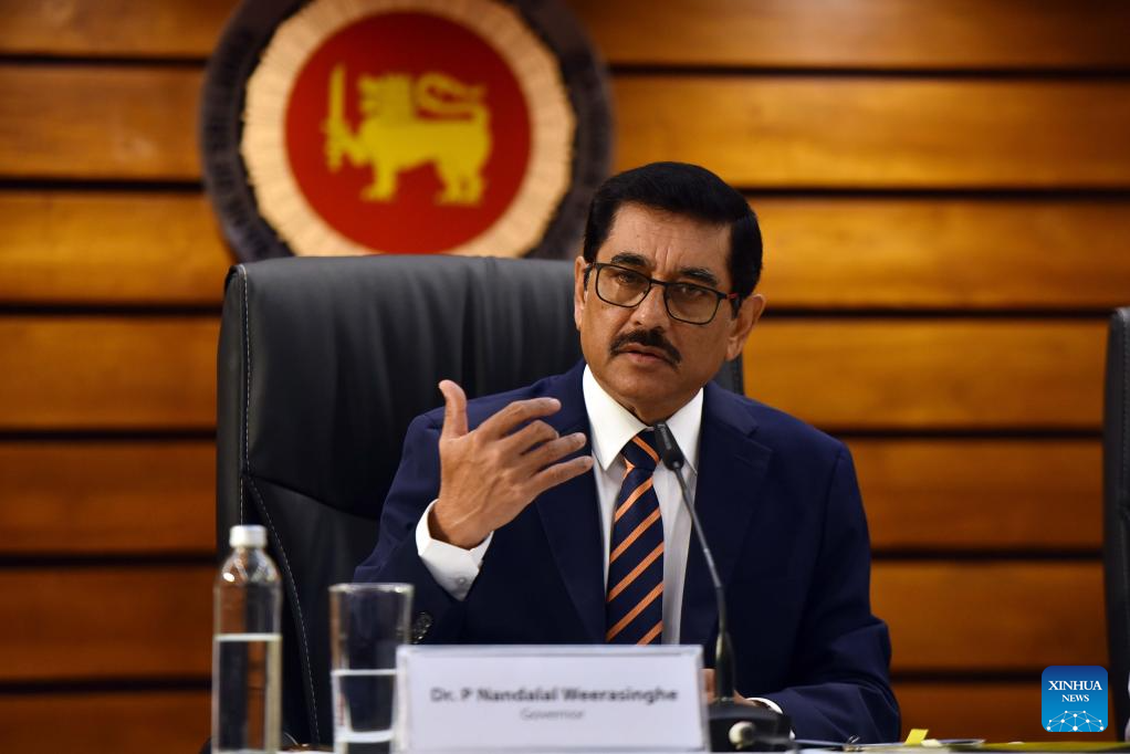 Governor of the Central Bank of Sri Lanka (CBSL) Nandalal Weerasinghe speaks at a press conference in Colombo, Sri Lanka, March 26, 2025. The Sri Lankan central bank decided to keep the overnight policy rate (OPR) at 8.00 percent, according to a statement from it on Wednesday. (Photo by Gayan Sameera/Xinhua)