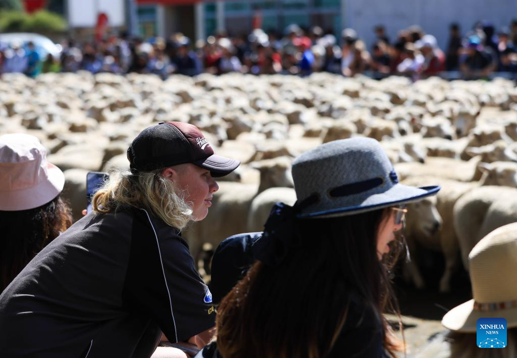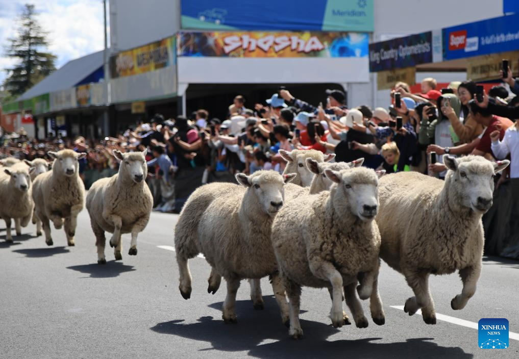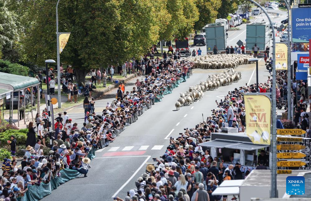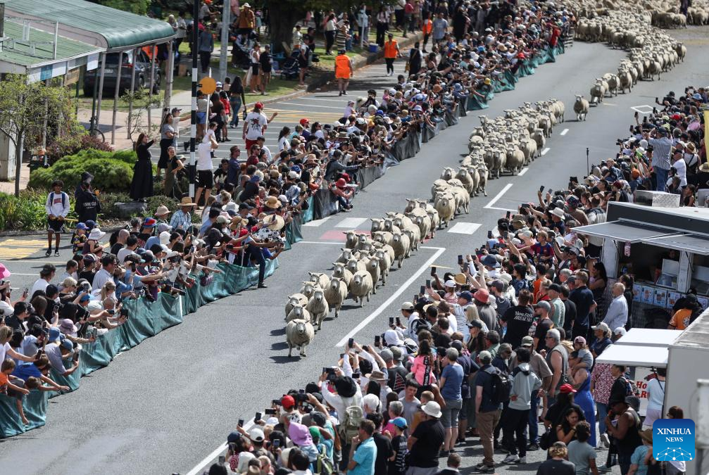 People gather to watch "Running of the Sheep" at the Great New Zealand Muster in Te Kuiti, New Zealand, March 29, 2025. (Xinhua/Long Lei)