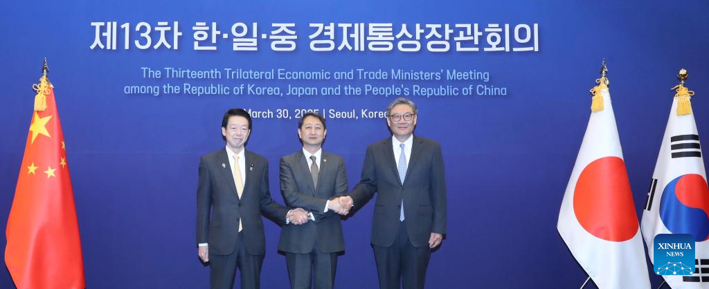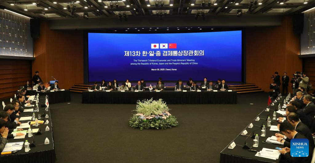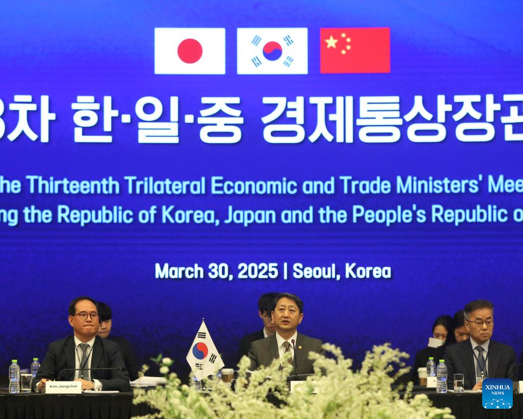 This photo taken on March 30, 2025 shows the 13th China-Japan-ROK Trilateral Economic and Trade Ministers' Meeting in Seoul, South Korea.