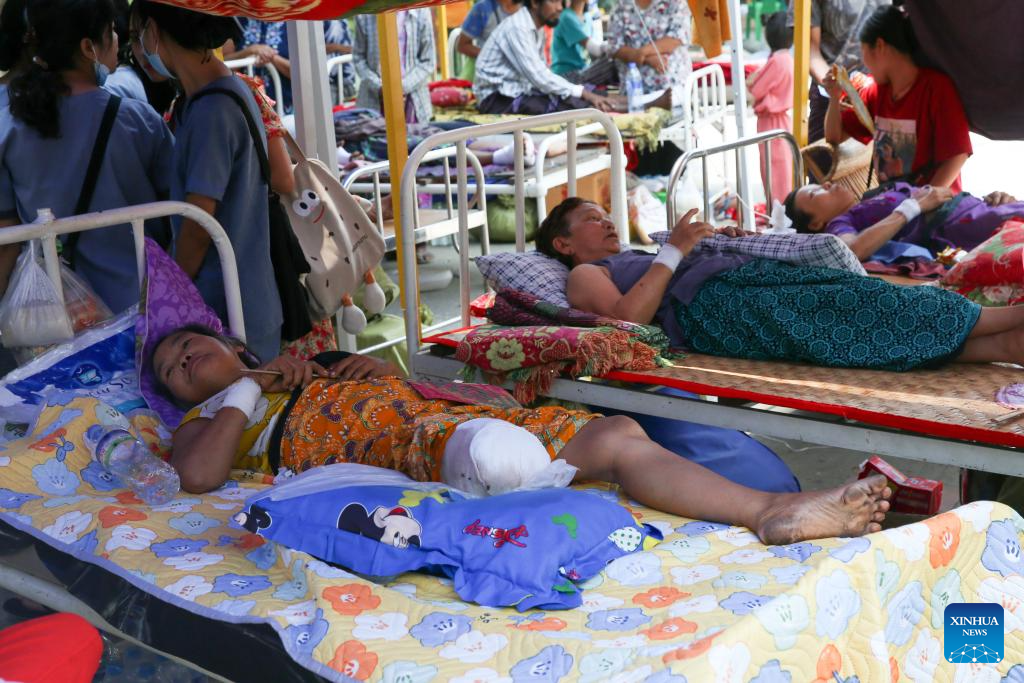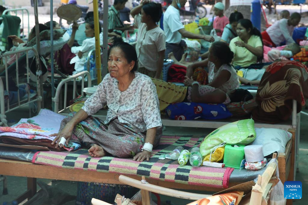 People injured in the earthquake receive treatment in Sagaing, Myanmar, April 1, 2025. A 7.9-magnitude earthquake struck Myanmar on March 28. Sagaing is one of the hardest-hit regions. (Photo by Myo Kyaw Soe/Xinhua)