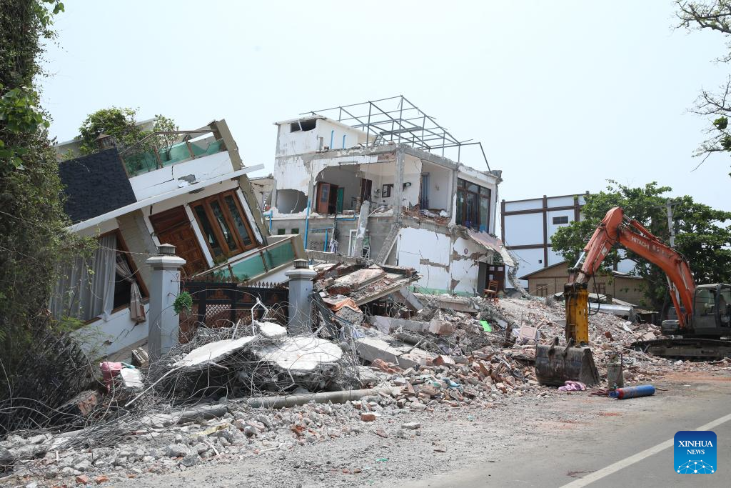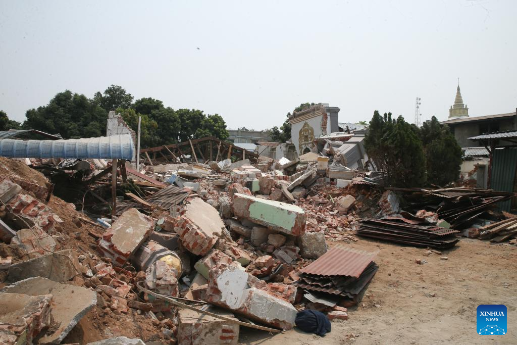Damaged buildings are pictured in Sagaing, Myanmar, April 1, 2025. A 7.9-magnitude earthquake struck Myanmar on March 28. Sagaing is one of the hardest-hit regions. (Photo by Myo Kyaw Soe/Xinhua)