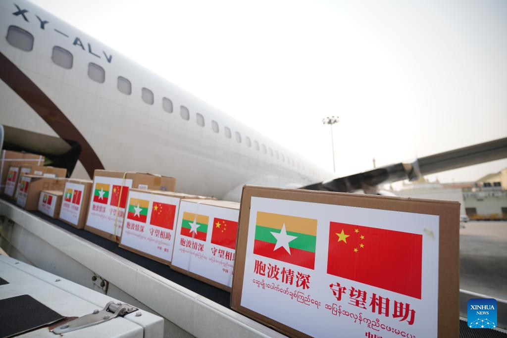 The Dehong Dai and Jingpo Autonomous Prefecture in Yunnan donated a batch of medical supplies worth more than 240,000 yuan (around 33,011.76 U.S. dollars) on Tuesday to support earthquake relief work in Myanmar. (Xinhua/Chen Xinbo)