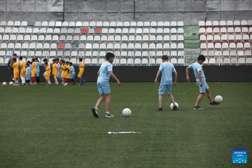 Afghan teenagers learn to play football in Kabul, Afghanistan, April 3, 2025. (Photo by Saifurahman Safi/Xinhua)