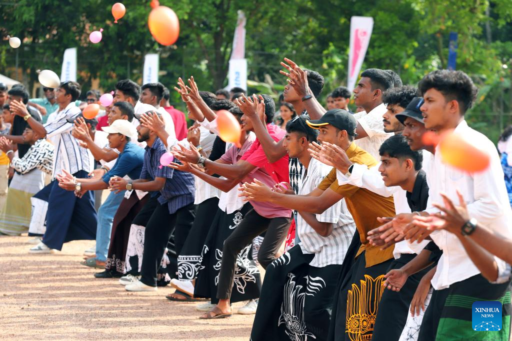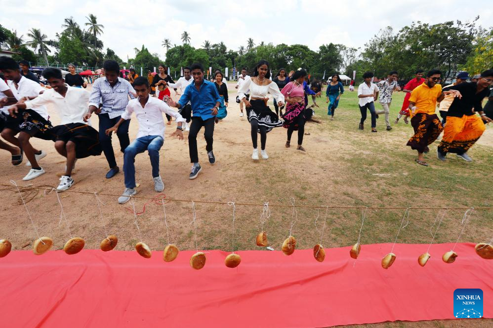 People play a traditional game to celebrate the upcoming Sinhala and Tamil New Year in Colombo, Sri Lanka, April 8, 2025. Sri Lanka's Sinhala and Tamil New Year falls on April 14 this year, with traditional games being organized across the country to celebrate the occasion. (Photo by Ajith Perera/Xinhua)