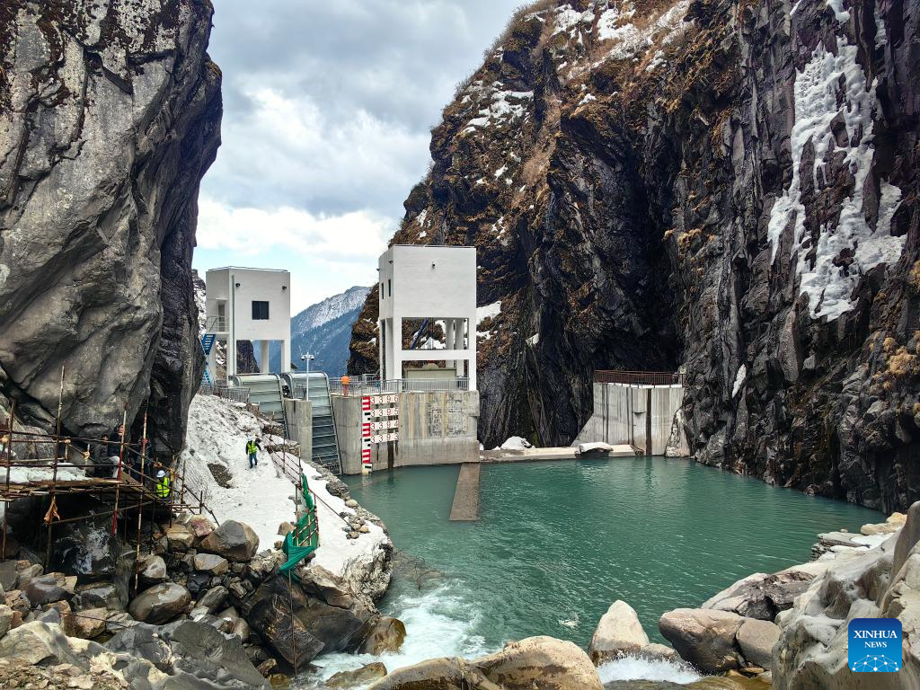 This photo taken on March 17, 2025 shows the Sanjen Khola hydropower station in Rasuwa district, Nepal. The Sanjen Khola hydropower station in Nepal, built by a Chinese company, has been put into operation and connected to the national grid, contributing to efforts in alleviating local power shortage. (China Harbour Engineering Company Ltd./Handout via Xinhua)