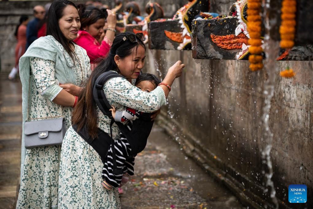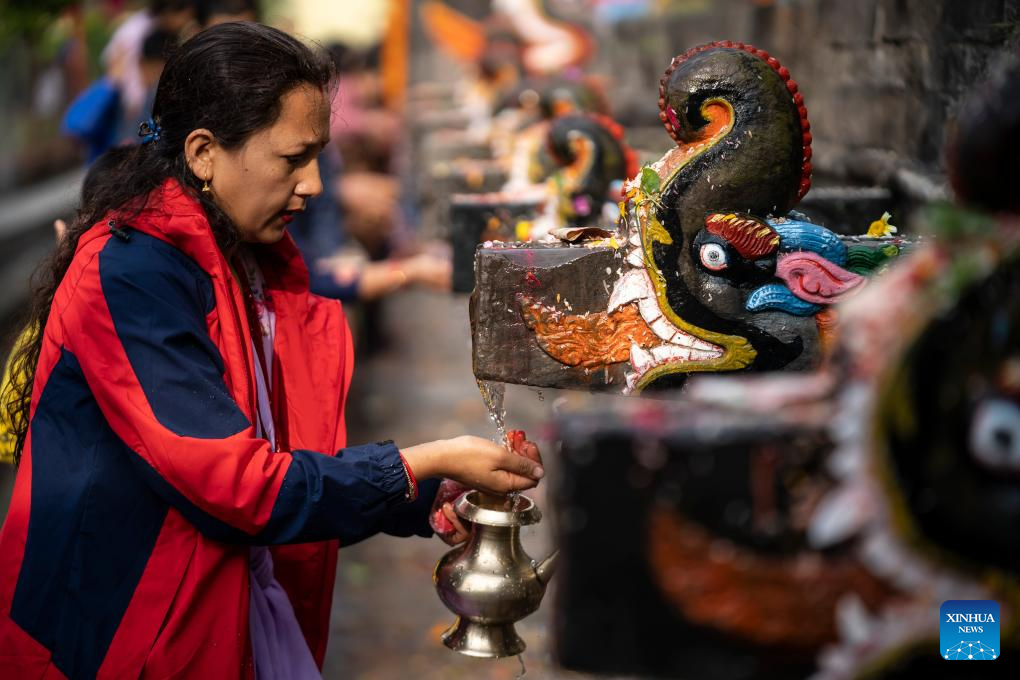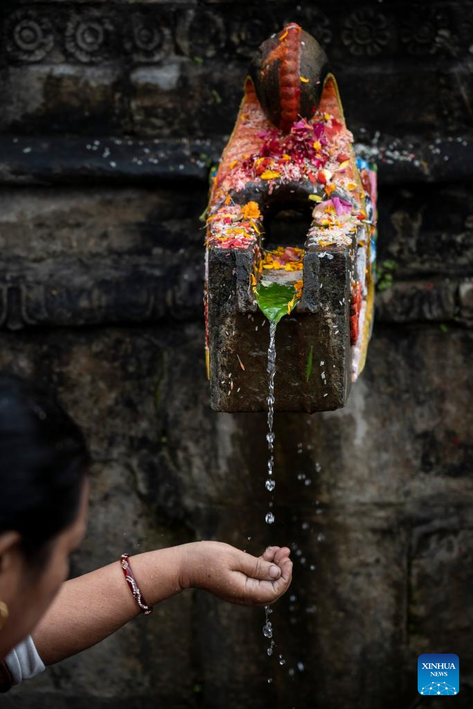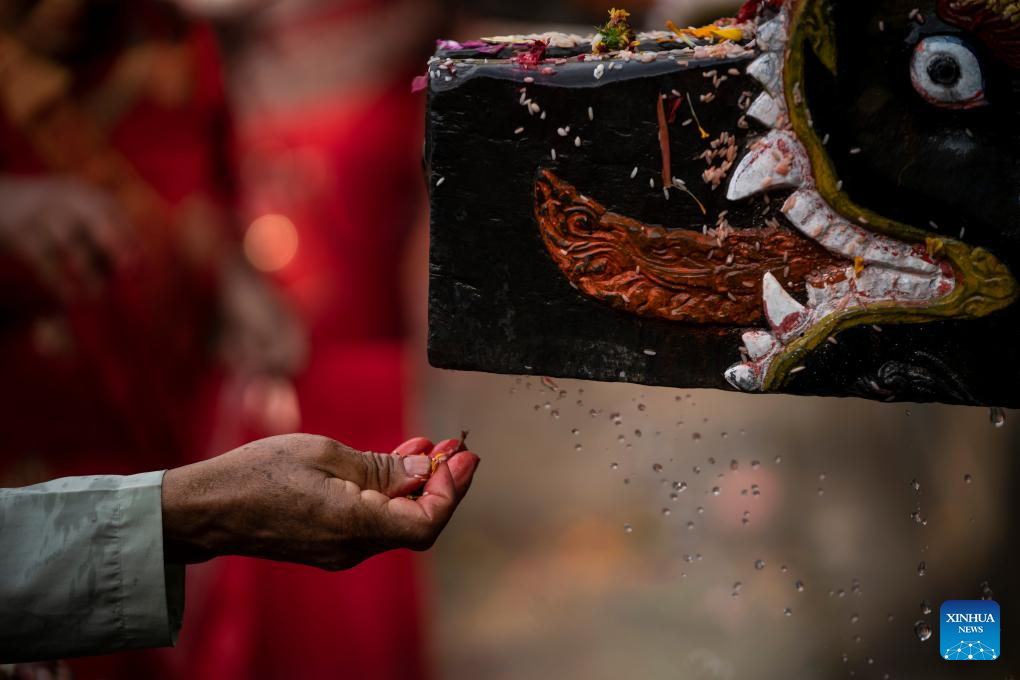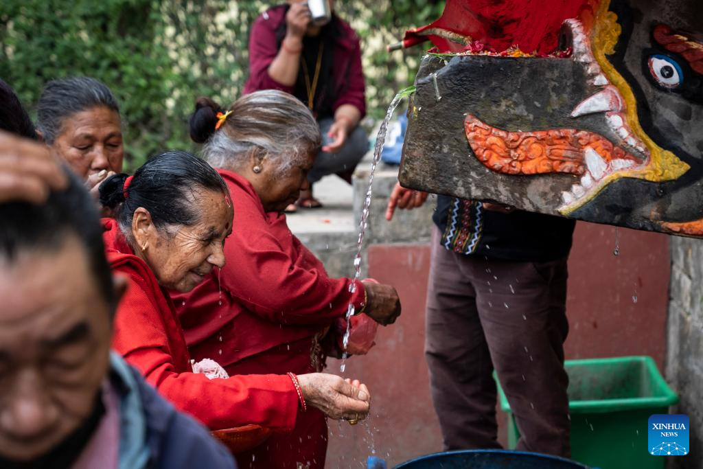 People perform rituals during the Baishak Asnan festival in Kathmandu, Nepal, April 12, 2025. The locals believe that taking a holy bath on this day purifies one's spirit and makes one free from skin diseases. (Photo by Hari Maharjan/Xinhua)