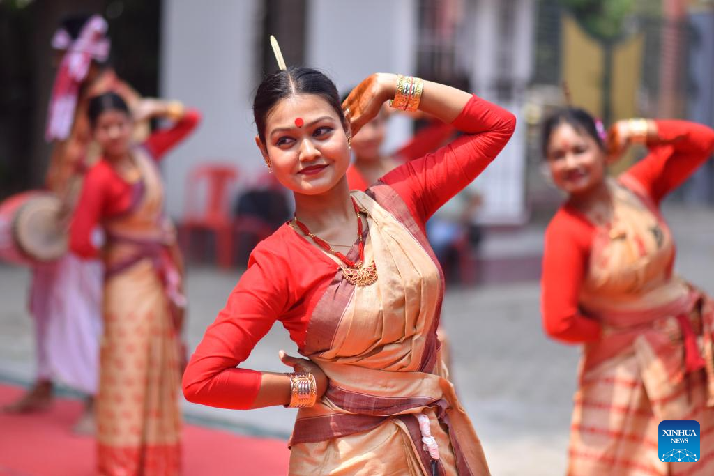 The festival welcomes the Assamese New Year and the arrival of spring. (Str/Xinhua)