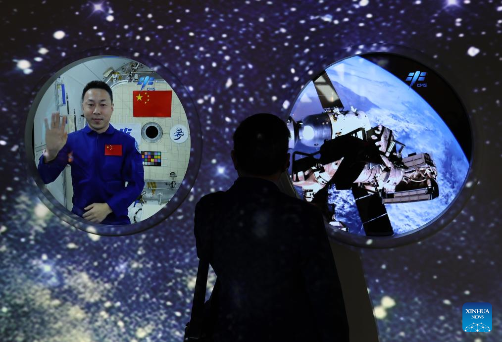Highlights include side-by-side displays of lunar soil samples collected by China's Chang'e-5 and Chang'e-6 missions, the "Jiaolong" deep-sea submersible experience capsule and next-generation humanoid robots. ■