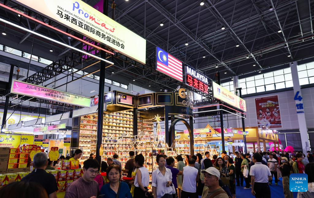 Visitors select Malaysian products at the 5th China International Consumer Products Expo (CICPE) in Haikou, south China's Hainan Province, April 15, 2025. (Xinhua/Yang Guanyu)