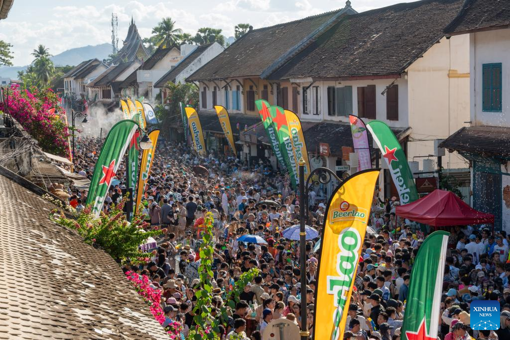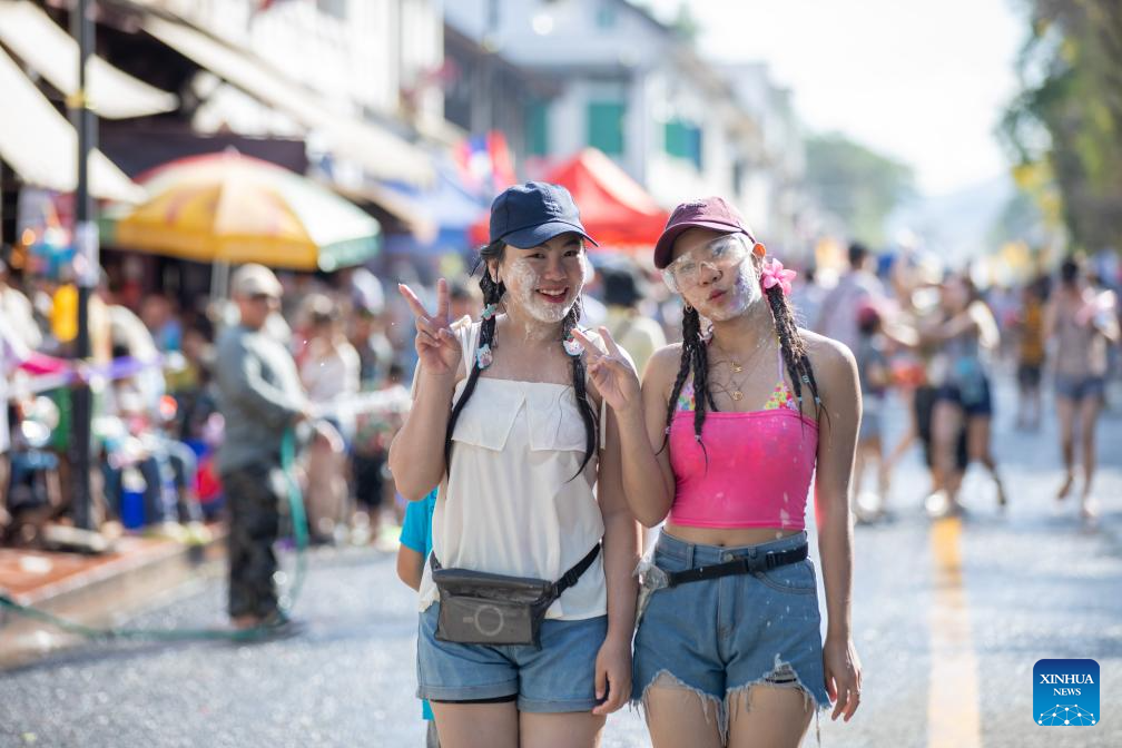 People participate in the celebration of the Songkran Festival in Luang Prabang, Laos, April 16, 2025. Laos celebrates the Songkran Festival, or the Lao New Year from April 14 to 16 this year. A series of celebrations are held to celebrate this traditional festival. (Photo by Kaikeo Saiyasane/Xinhua)