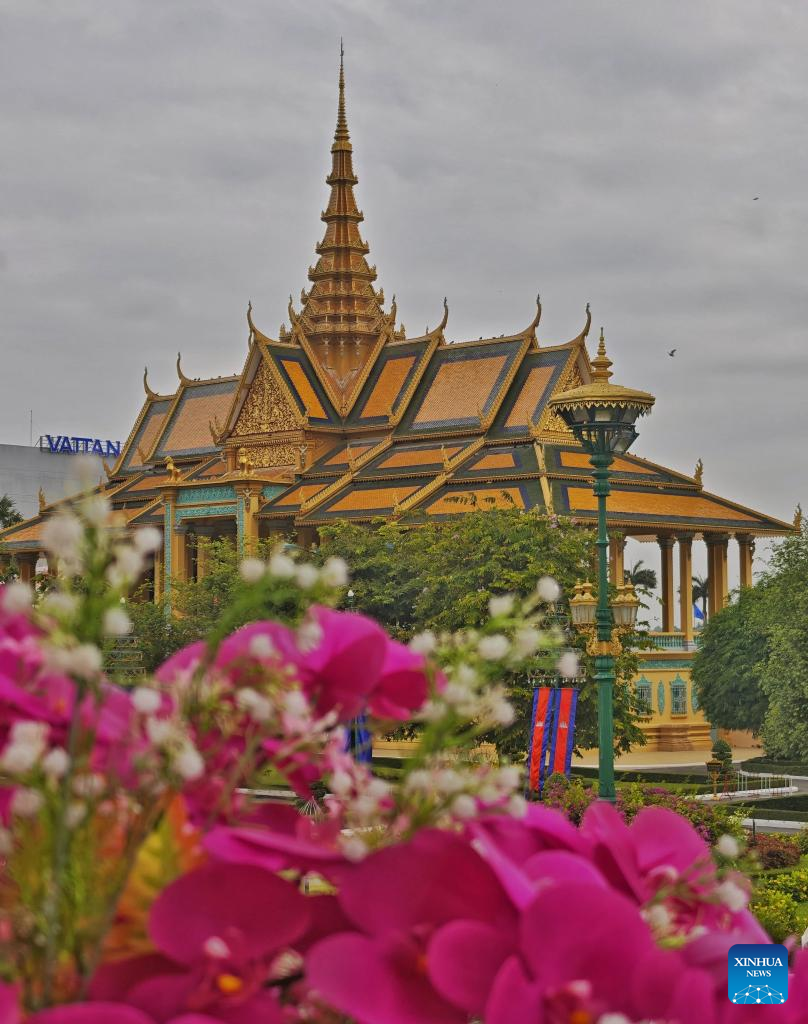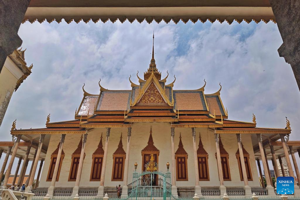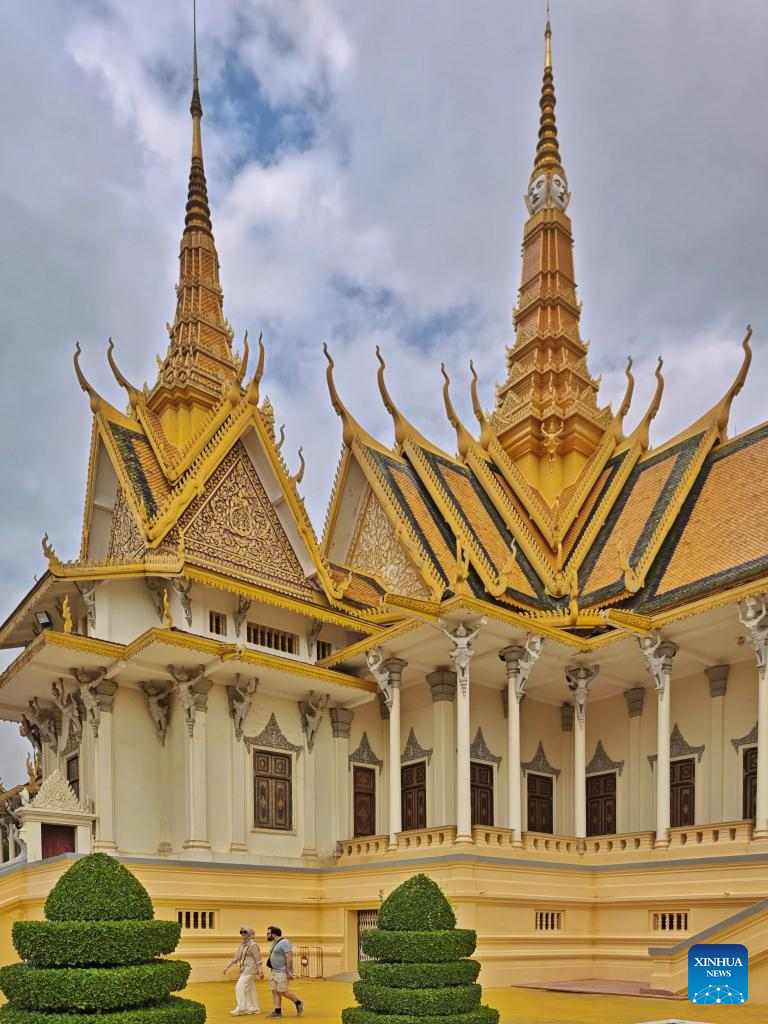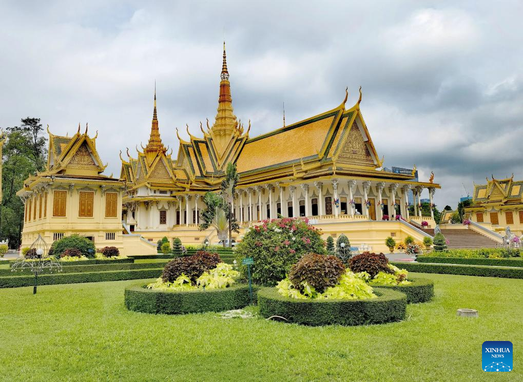 This photo taken on April 15, 2025 shows the Royal Palace in Phnom Penh, Cambodia. Phnom Penh, capital of the Kingdom of Cambodia, is located beside the confluence of the Mekong and Tonle Sap rivers. The coexistence of traditional architecture and modern buildings endows the city with life and vitality. (Xinhua/Liu Weibing)