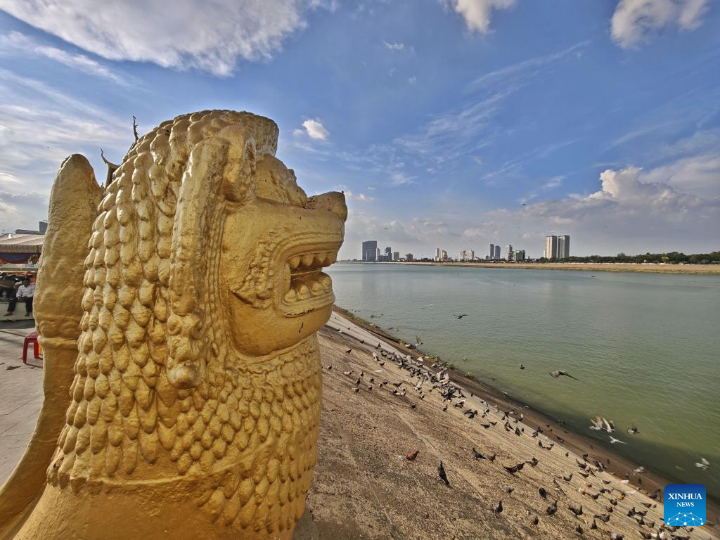 This photo taken on April 14, 2025 shows the scenery along the Mekong River in Phnom Penh, Cambodia. Phnom Penh, capital of the Kingdom of Cambodia, is located beside the confluence of the Mekong and Tonle Sap rivers. The coexistence of traditional architecture and modern buildings endows the city with life and vitality. (Xinhua/Wang Ye)